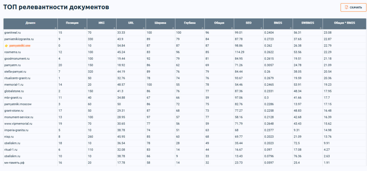 Релевантность страницы до